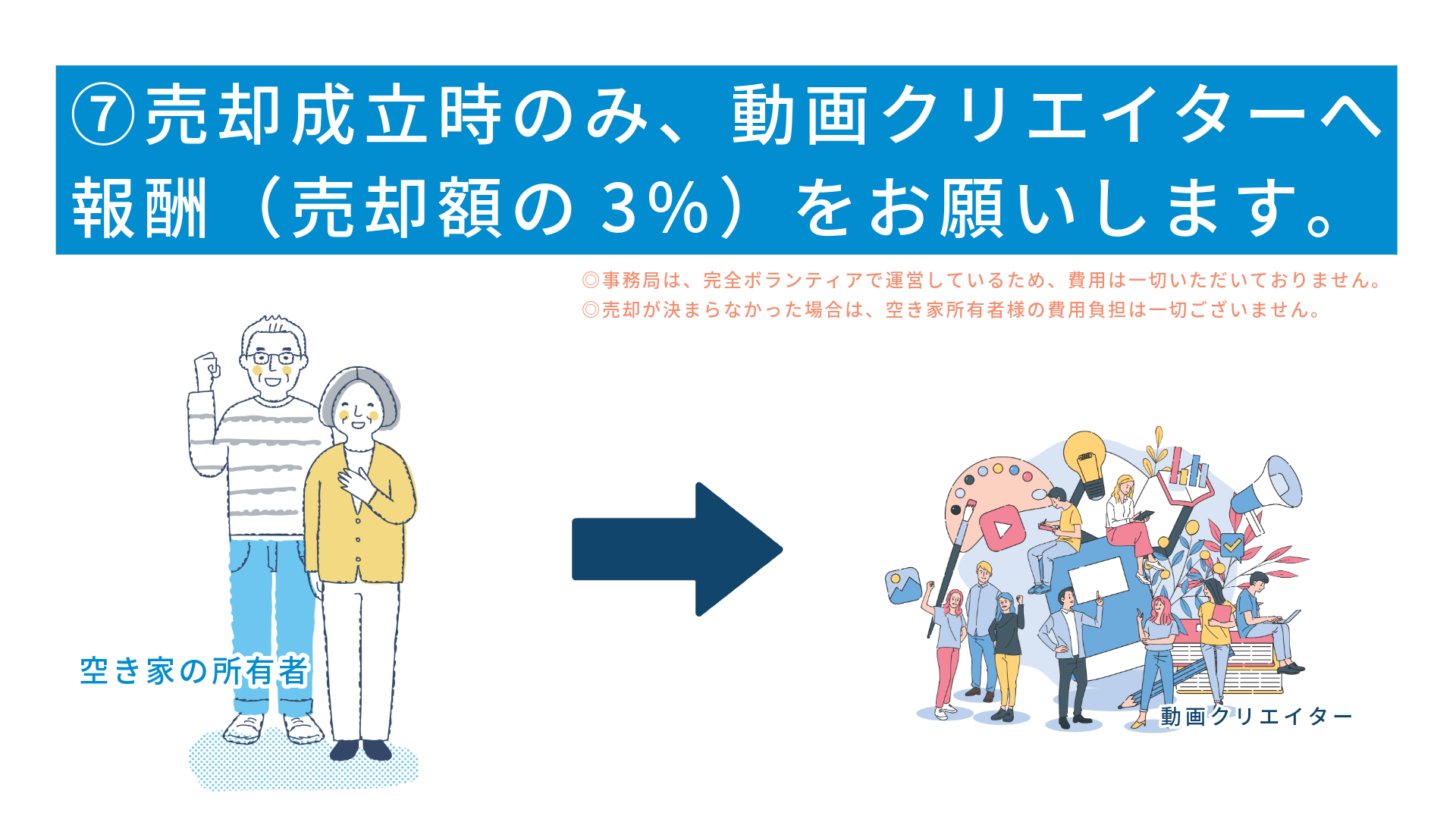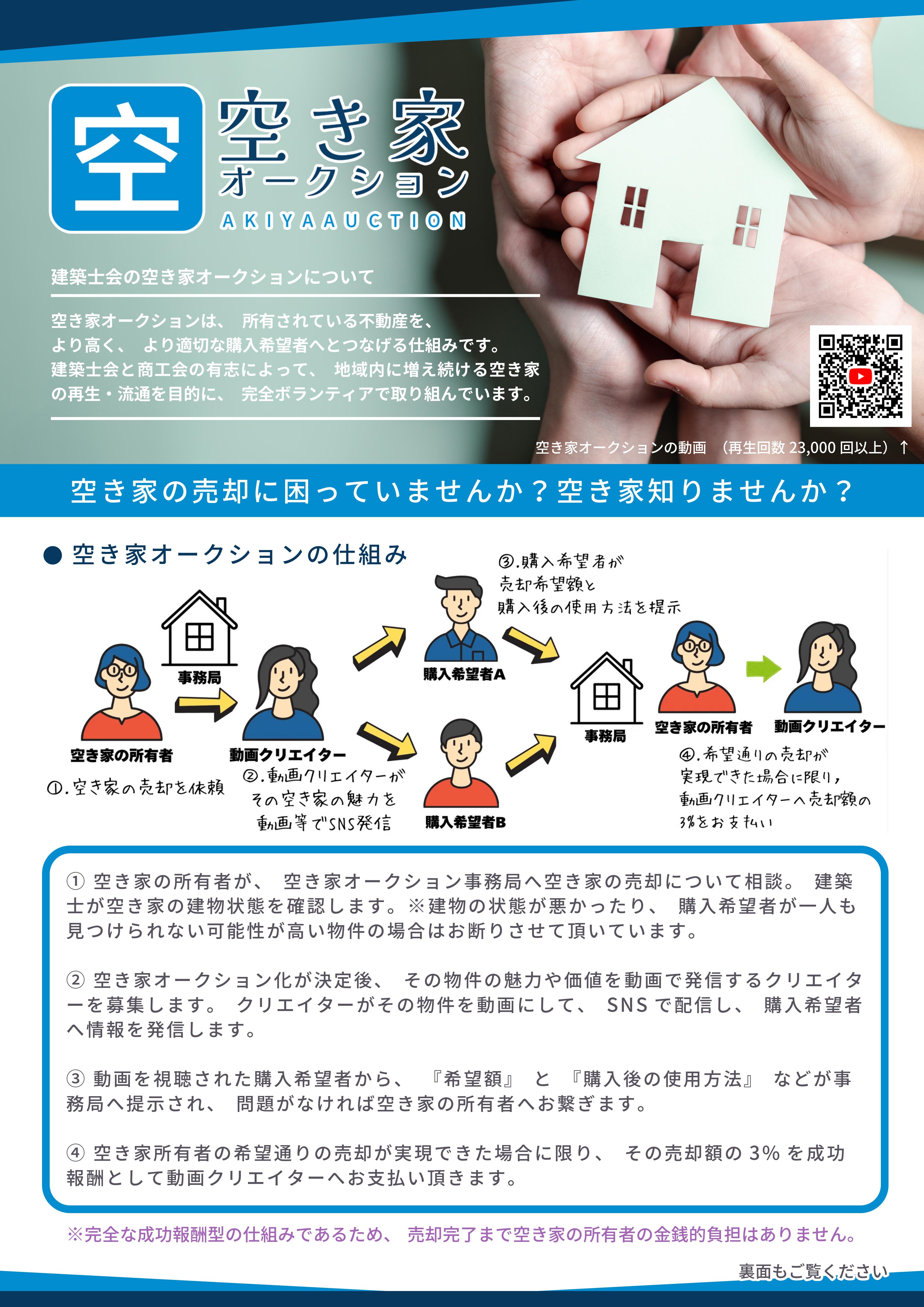 ※事務局は完全ボランティアのため、費用負担は一切ありません。この取り組みは、空き家の流通促進、地域活性を目的としています。