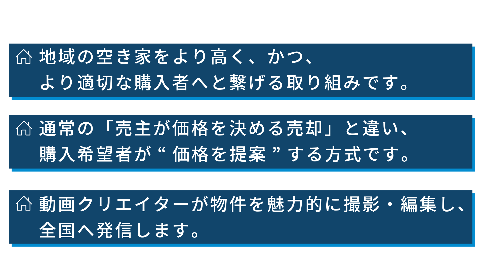 さらに、動画クリエイターが物件を魅力的に撮影・編集・発信し、全国から購入希望者が集まります。また、状況に応じてWeb広告を活用します。